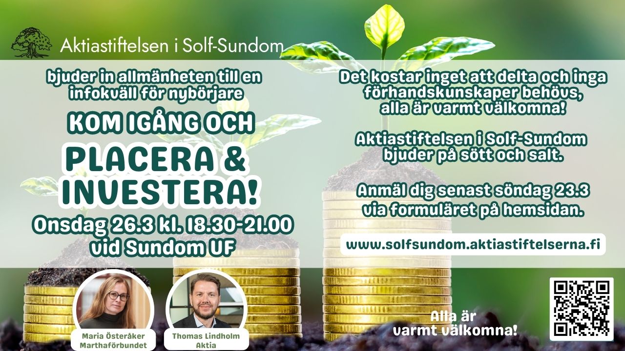 Föreläsare : Maria Österåker , Ekonomirådgivare Martha förbundet Thomas Lindholm, chef för Spara och Placera, AKTIA